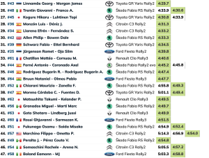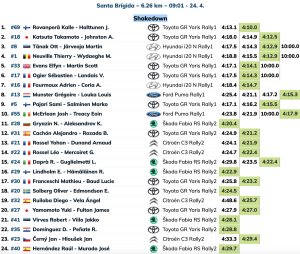 Una única pasada les hizo falta a los rusos Nikolay Gryazin y Konstantin Aleksandrov (Škoda Fabia RS Rally2) para ser undécimos y los mejores Rally2 con un tiempo de 4:20.4, siendo al segundo mejor tiempo el de los españoles Alejandro Cachón y Borja Rozada (Toyota GR Yaris Rally2), que mejoran en 3.7 su primer registro, de un 4:24.9 a un 4:21.2, para superar a los galos Yohan Rossel y Arnaud Dunand (Citroën C3 Rally2) en 0.7.