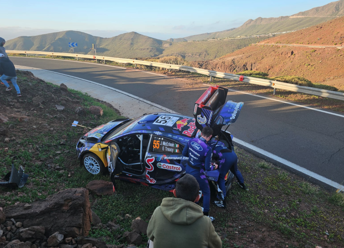 Comenzó la jornada final del Rally Islas Canarias con la disputa del tramo cronometrado ‘Agüimes – Santa Lucía’ (14,97 km), donde la noticia más destacada ha sido la salida de carreta del equipo de M-Sport compuesto por Josh McErlean y Eoin Treacy (Ford Puma Rally1), que eran décimos de la general.