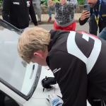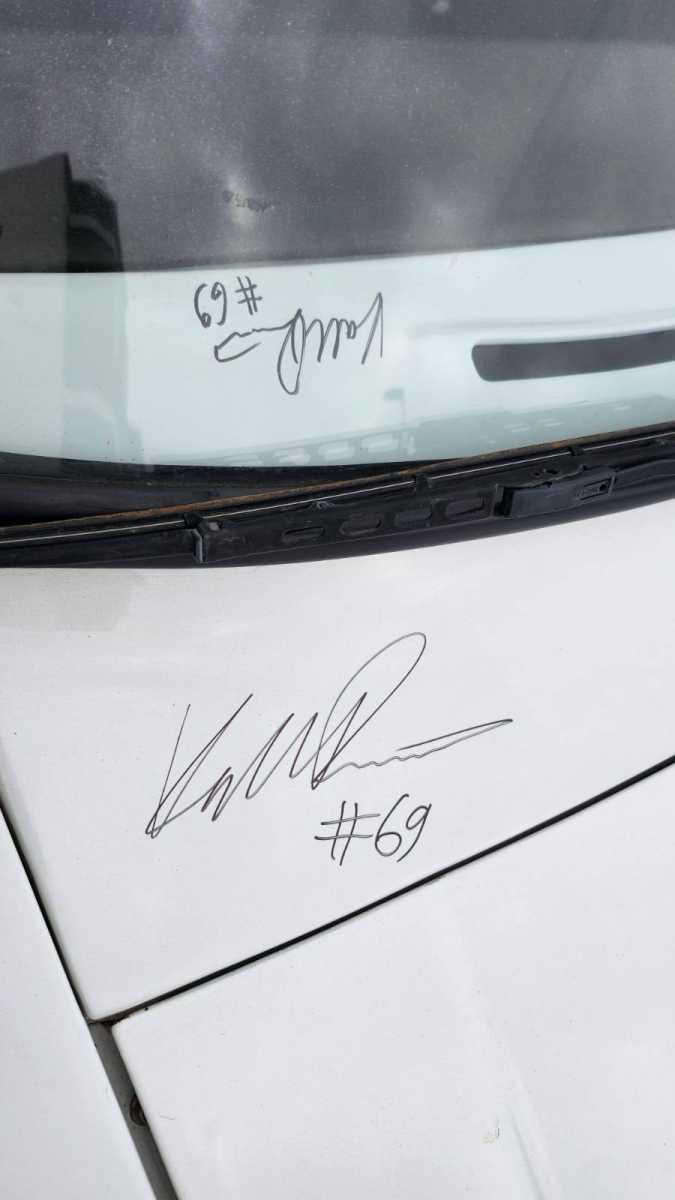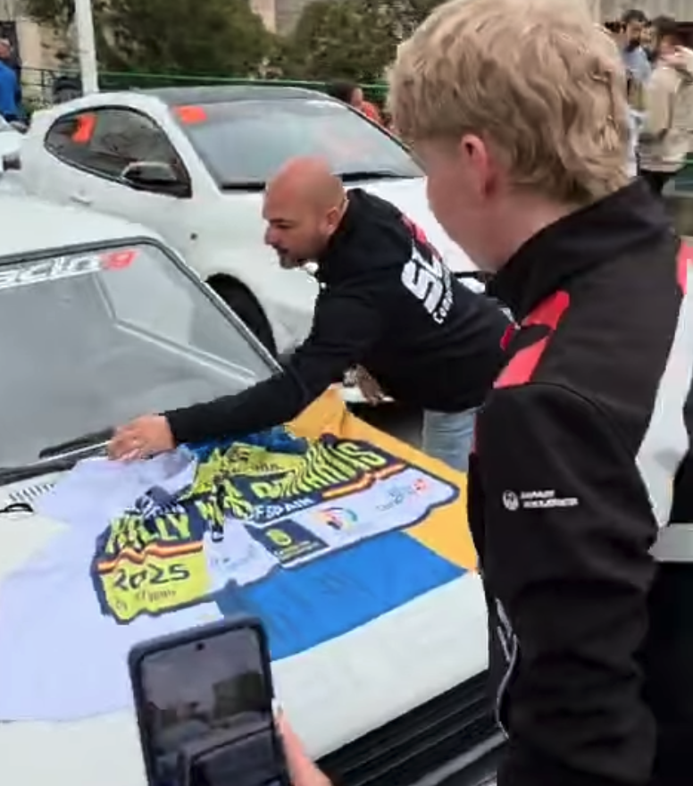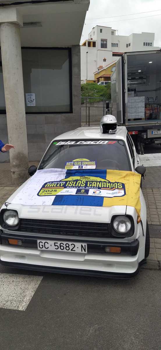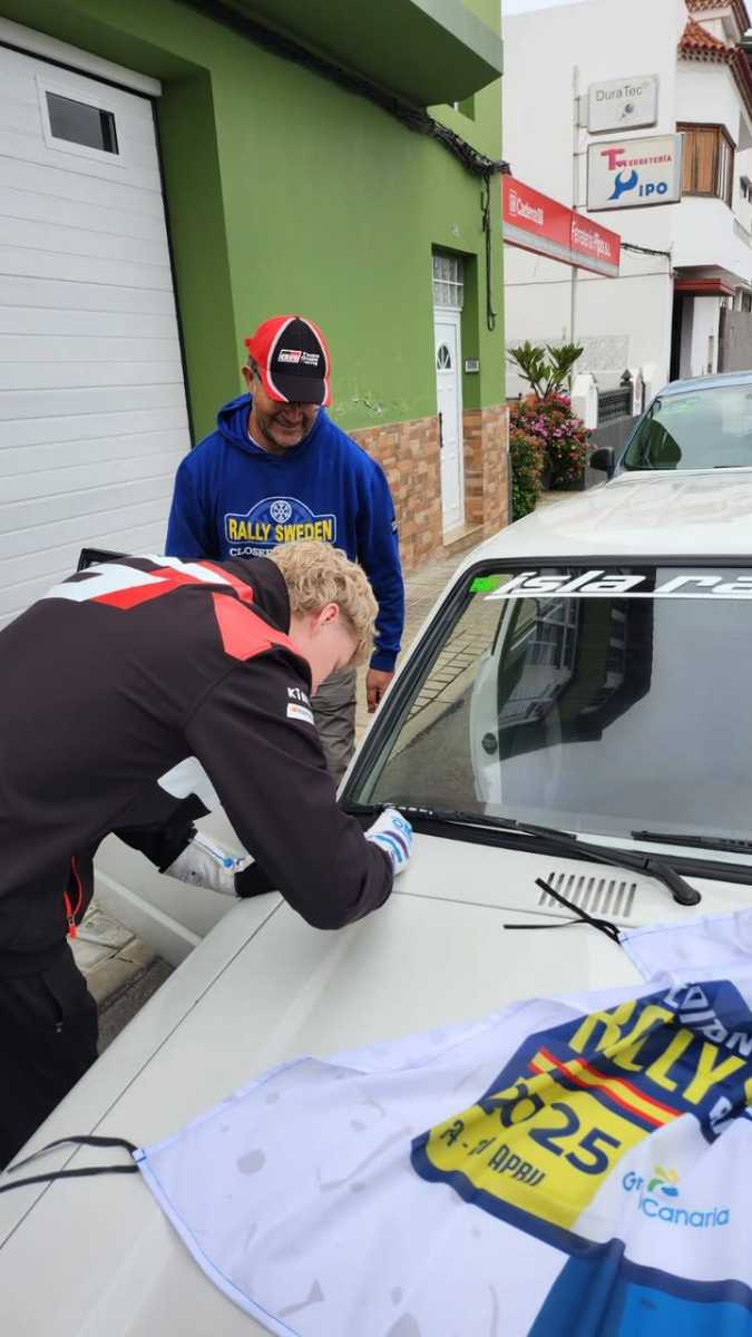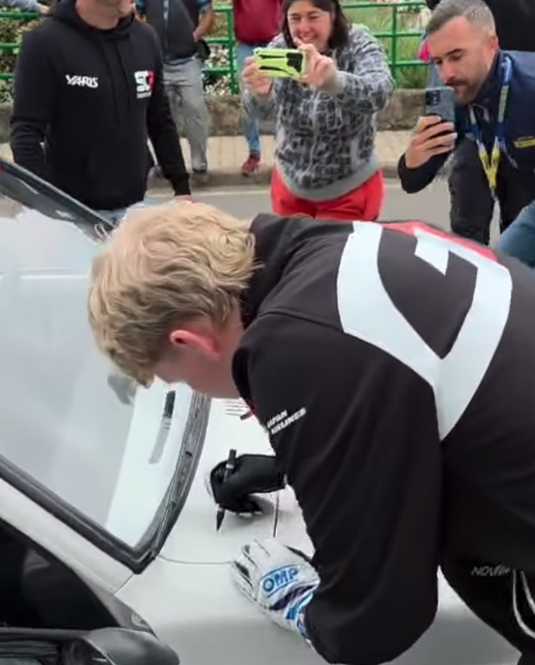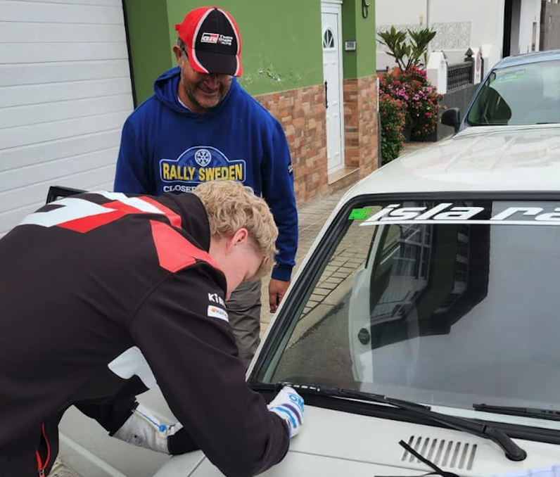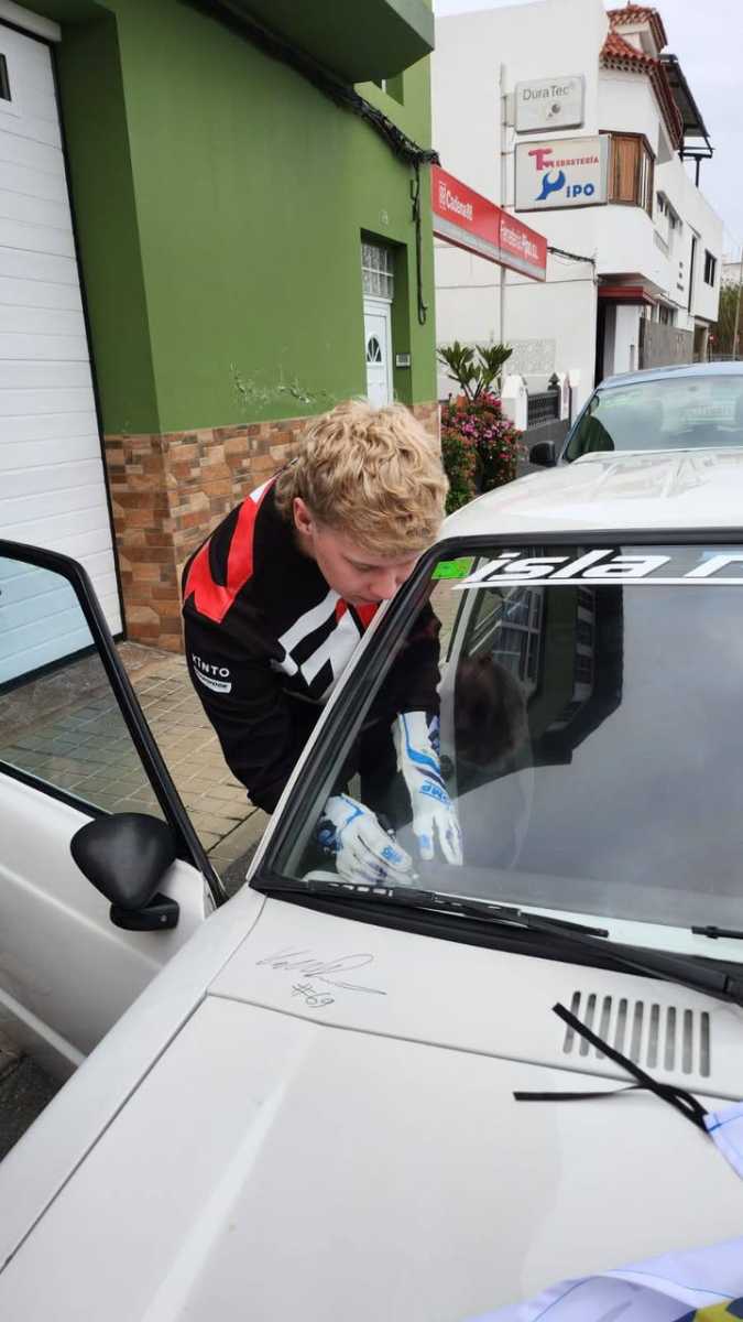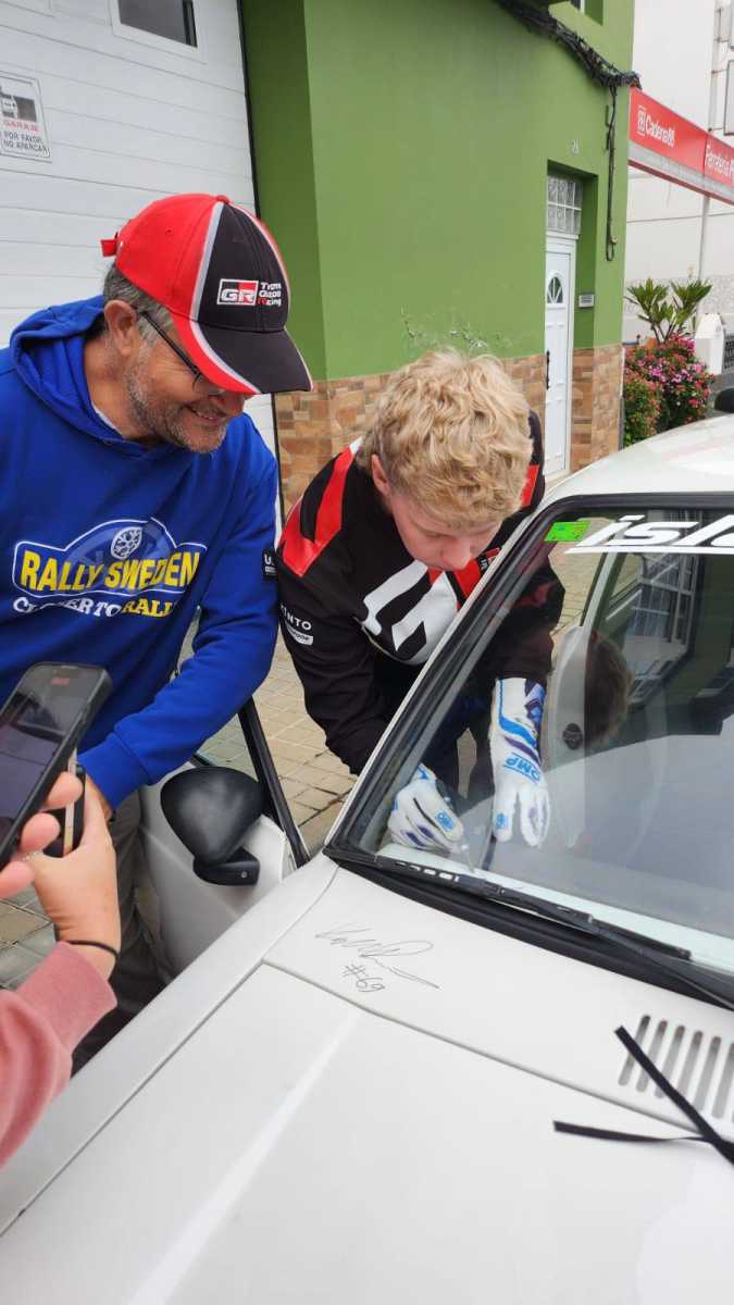 En los reconocimientos previos al Rally Islas Canarias el piloto finés Kalle Rovanpera se paró a firmar el veterano Toyota Starlet del piloto grancanario Luis Montesdeoca.