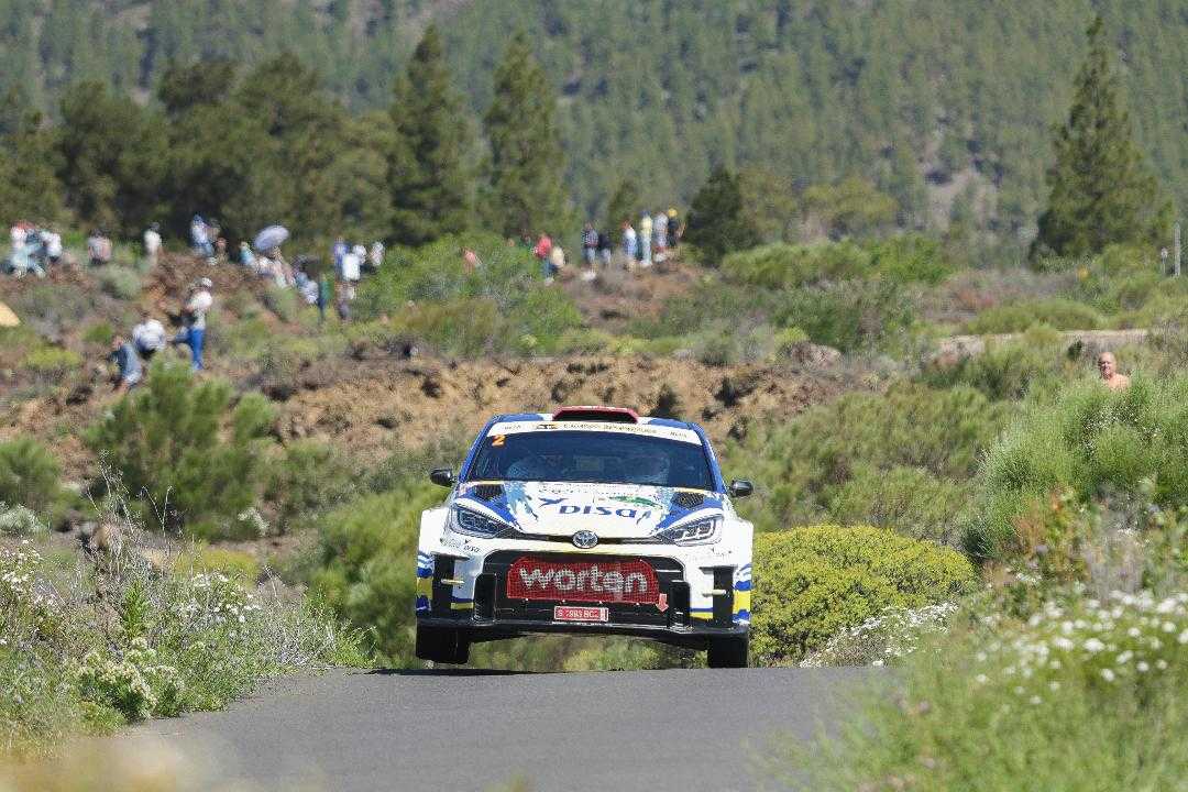 El día comenzó con Cagiao y Martínez marcando el ritmo en “Santiago del Teide”, donde lograron ampliar en nueve décimas su diferencia respecto a Cruz y Mujica. Pero en la siguiente cronometrada, “Costa Adeje”, aparecerían los inconvenientes para ellos, ya que tuvieron que hacer toda la especial con el Alpine A110 GT+ en modo avería por un problema en el turbo. Esto les hizo perder casi un minuto respecto a Enrique Cruz y Yeray Mujica, que ahora lideran la carrera sólidamente. Los de Alpine volvieron a ser de nuevo los más rápidos en “Adeje bp”, pero aun así les separan ya 46,7 segundos de la primera posición en la clasificación del Campeonato de España.