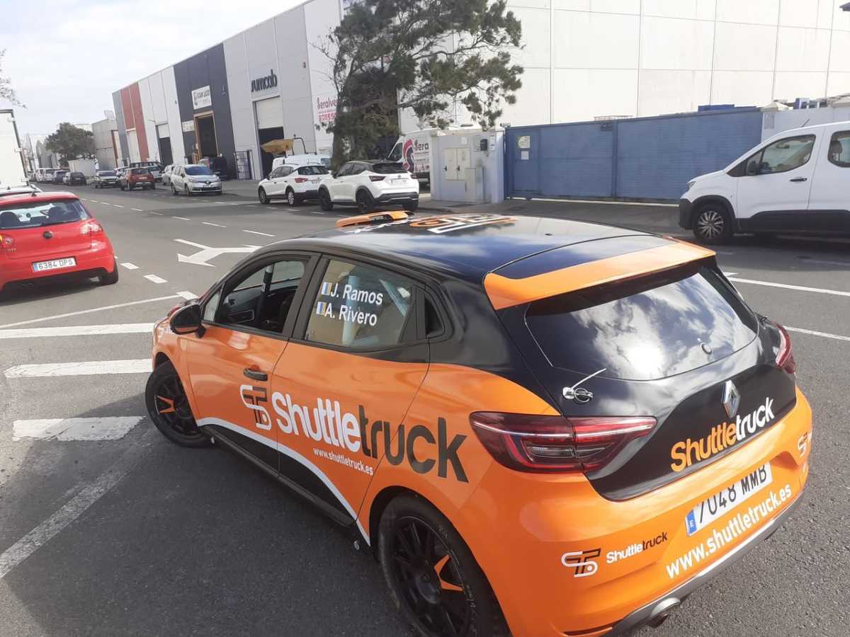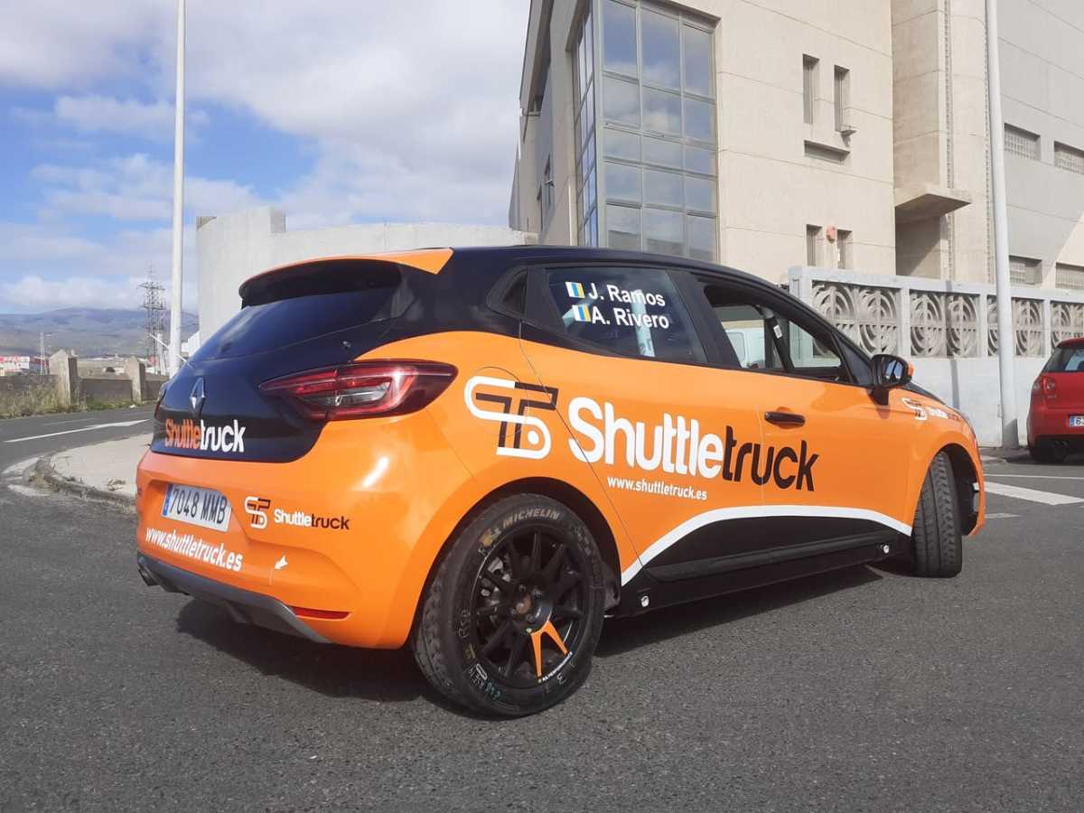 El rotulista Acorán Navarro trabajó en la rotulación del Renault Clio Rally5 que el piloto grancanario Jesé Ramos estrenó en el Rally Villa de Adeje