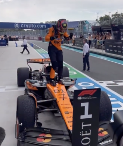 «Tuve problemas en la tanda con los neumáticos duros, así que ahí hay cosas en las que trabajar aún. Todavía tengo que seguir aprendiendo, pero estoy muy contento de salir de Miami en lo más alto», dijo Piastri -que confirmó su intención de convertirse en el primer campeón mundial australiano desde que capturase por última vez el título para el gigante oceánico, en 1980, Alan Jones-, después de ganar el sexto Gran Premio de la temporada en la pista de Florida.