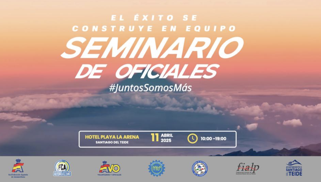 La Federación Canaria de Automovilismo organizará el próximo domingo 11 de mayo en Santiago del Teide, municipio del Sur de Tenerife, un seminario especialmente dirigido a los oficiales canarios que tienen responsabilidades en las diferentes competiciones regionales. Bajo el lema #JuntosSomosMás, el encuentro se desarrollará en el Hotel Playa La Arena de 10 a 19 horas.