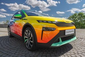 - El colorido coche eléctrico celebrará su estreno público a finales de esta semana en Mladá Boleslav y Hamburgo (Alemania), al que seguirán más eventos a lo largo del año