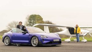 Casi 20 años después de que ambos participaran por primera vez en una carrera entre un coche y un avión, los presentadores de televisión británicos Richard Hammond y James May han llevado el formato a la era eléctrica en un nuevo vídeo del canal de YouTube DriveTribe. En la carrera original, los dos eran compañeros de equipo y compartían la cabina de un Cessna 182, desde la ciudad italiana de Alba hasta Londres. Se enfrentaban a su copresentador, Jeremy Clarkson, en un Bugatti Veyron. Esta vez, sin embargo, competían entre ellos, con May surcando los cielos en un avión eléctrico y Hammond al volante del potente Porsche Taycan Turbo GT.