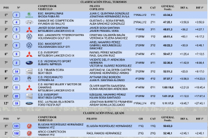 – El podio final del rallye lo completaron Sosa-Sánchez (Hyundai i20 N Rally2) y Sosa-Frafiel (Mitsubishi Lancer Evo) e igualmente en el slalom.