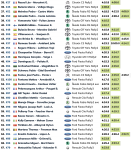 Josh McErlean quedó séptimo con su coche de M-Sport, seguido de Takamoto Katsuta, Adrien Fourmaux y Sami Pajari. Grégoire Munster completó el top 11.