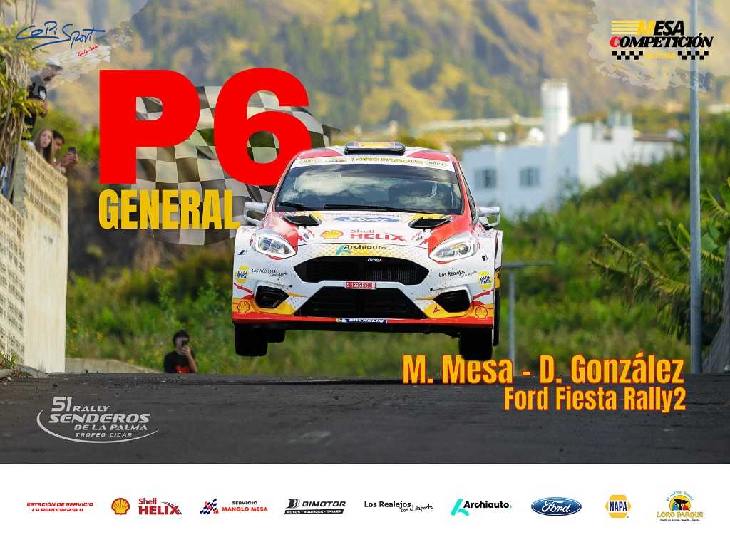 Publicamos el vídeo de la actuación de los tinerfeños Manolo Mesa y Dailos González (Ford Fiesta Rally2), sextos del Rally Senderos de La Palma 2026.