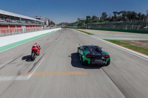 El superdeportivo V8 biturbo HPEV de Sant’Agata Bolognese y la superbike V4 de Borgo Panigale protagonizan una emocionante carrera de aceleración