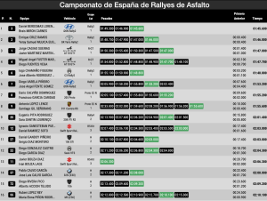 Quintos han sido Iago Caamaño y José Alberto Rodríguez (Citroën C3 Rally2), seguidos de Diego Varela y José Ángel Fente (Hyundai i20N Rally2)