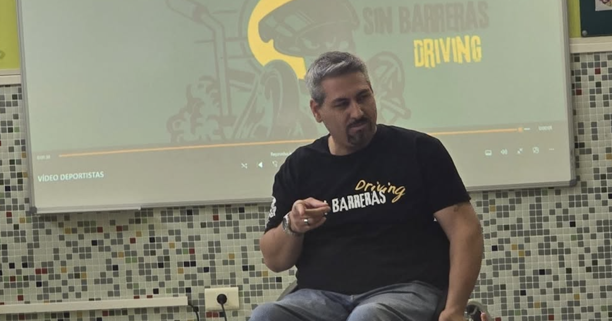 El piloto grancanario Domingo Pulido, del club club Sin Barreras Driving, contó sus experiencias deportivas y su visión de la accesibilidad en el mundo del motor en el CEIP Orobal de Arucas