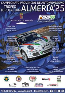 Para esta temporada del 2025, el calendario de pruebas previstas es de once, de las que ya se han disputado las tres primeras, correspondientes a tres modalidades distintas (el rallye Valle del Almanzora, la Cronometrada al Castillo de Serón y el Rallycrono de Níjar) tras la que José Antonio Aznar lidera la clasificación en el apartado de pilotos.