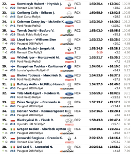 Dos podios consecutivos en el ERC, tras terminar tercero en Suecia el mes pasado, significan que Marczyk se ha colocado en la cima de la clasificación del campeonato con una ventaja de 16 puntos sobre Mads Østberg. «Está bien, pero desafortunadamente no logramos mantener el equilibrio entre el nivel de riesgo y la lucha por los puntos del power stage. Estoy muy contento de estar en segundo lugar en el Rally de Polonia. Este fin de semana nos fue bien, y ahora deberíamos estar igual en el asfalto», dijo Marczyk.