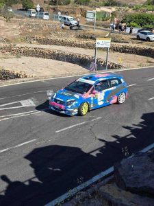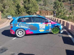 Ls tinerfeños Ayoze Rodriguez y Sarita Melo (Honda Civic Type R) sufrieron un pequeño golpe en el segundo tramo cronometrado del Rally Villa de Granadilla, lo que les dejó fuera de carrera.