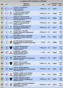 Cuartos son Fernando Cruz-Ricardo Luis (Hyundai i20N Rally2), a 0.6, quedando más lejos de los anteriores Sergio Fuentes-Tecorice Hernández (Skoda Fabia RS Rally2), quintos a 2.7.