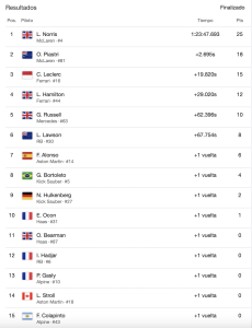 Piastri le dio a McLaren la segunda plaza al superar al Ferrari de Charles Leclerc en más de 17 segundos, siendo cuarto al siete veces campeón del mundo, Lewis Hamilton,