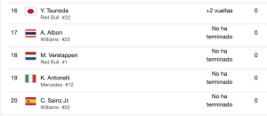El holandés Max Verstappen (Red Bull( abandonó en la primera vuelta al ser embestido por Andrea Kimi Antonelli.