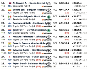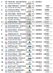 Solberg lideró a un grupo de pilotos de WRC2, con Gus Greensmith superando a Yohan Rossel para lograr el segundo puesto en la categoría y el séptimo en la general. Kajetan Kajetanowicz y Alejandro Cachón completaron el top 10.