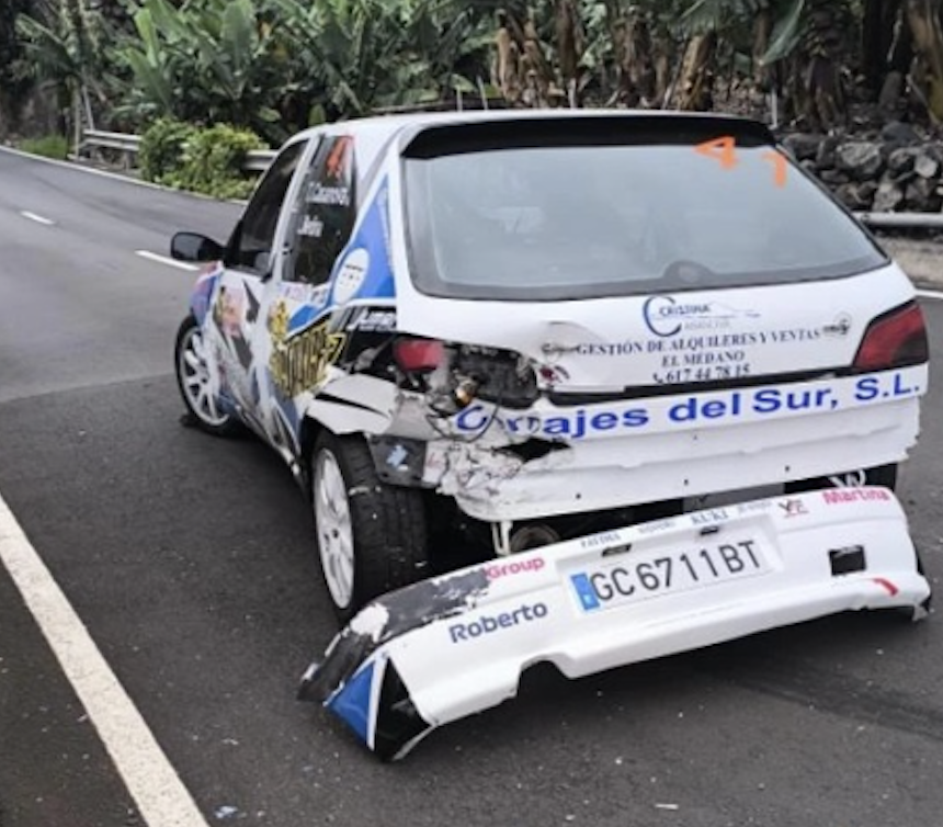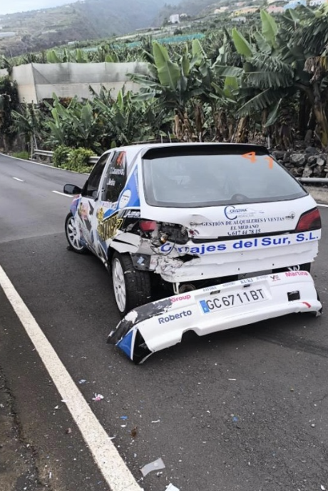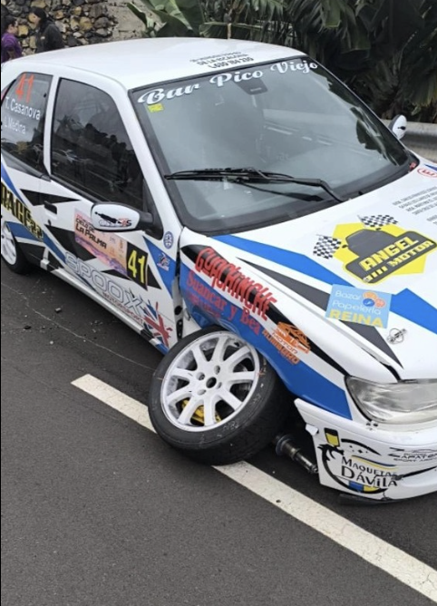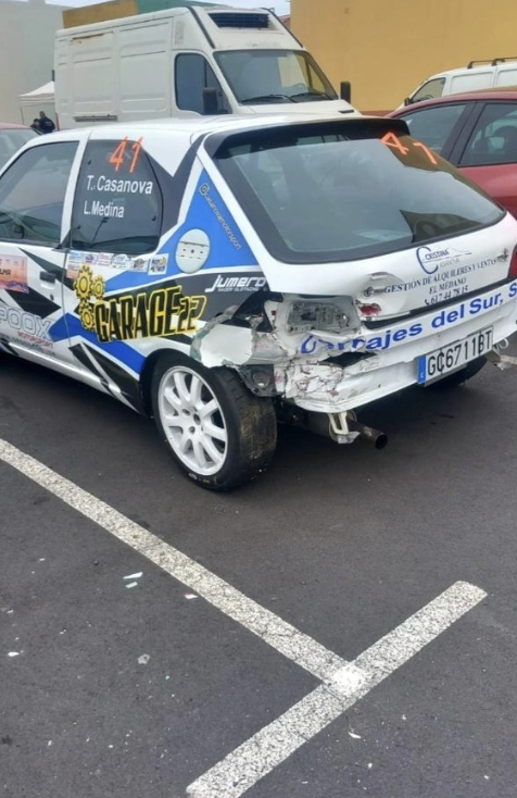 Texenery Casanova y Laura Medina (Peugeot 306 GTI) finalizaban la primera jornada del RallySprint Cielo de La Palma en el puesto 41, estando motivados de cara a la segunda jornada, la del sábado. Pero todo se torció pronto, puesto que en el primer tramo del día sufrían un accidente que les dejó fuera de competición, Por fortuna, los dos están bien, que es lo único importante.