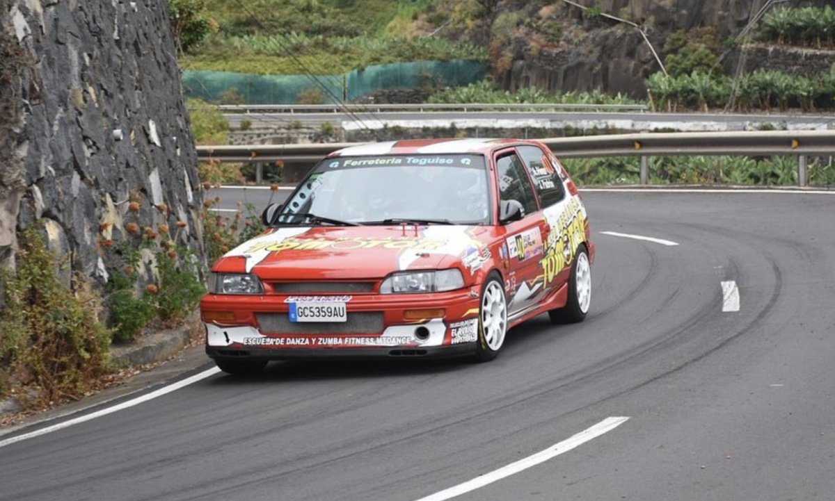 Lo lanzaroteños Adián Andrés Pérez y Javier Padrón lograron llevar su Toyota Corolla GT a la meta del Rallysprint Cielo de La Palma ante la importante competencia de los pilotos locales.
