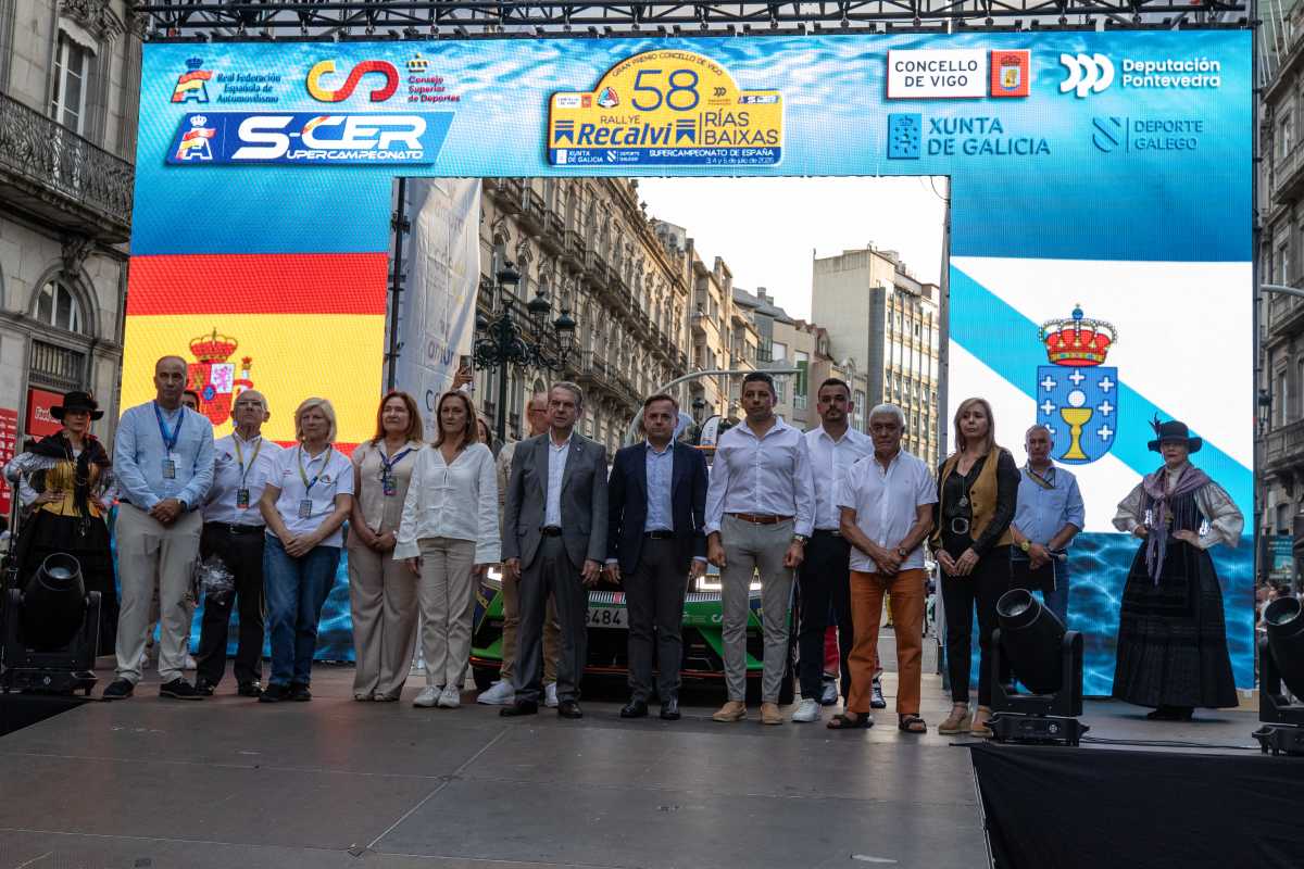 La vicepresidenta de la Diputación de Pontevedra, Luisa Sánchez y el Secretario Xeral para o deporte de la Xunta de Galicia, José Ramón Lete, también se subieron al nuevo podio digital de la prueba para dar la salida a varios equipos; al igual que el promotor del Rallye, Chema Rodríguez, y el presidente de la Escudería Rías Baixas: Damián Girálde, entre otros.