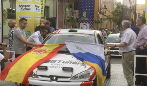 En la tarde-noche de este viernes arrancó el 11º Rally Comarca Norte Gran Canaria bajo la dirección del CD. Azuatil. El punto de salida elegido y que repite mañana por la tarde para la ceremonia de llegada, fue la emblemática Plaza de Santiago de Gáldar, a donde no volvía la prueba desde su primera edición. Un numeroso público acudió para animar el ambiente y despedir a los finalmente 70 equipos participantes, ya que se descolgaron de la lista inicial 10 bajas de última hora, como la del actual campeón provincial Armide Martín.