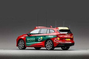 - El fabricante checo de automóviles proporcionará una flota totalmente eléctrica de hasta 225 vehículos de apoyo para el Tour de Francia, compuesta por modelos totalmente eléctricos e híbridos enchufables