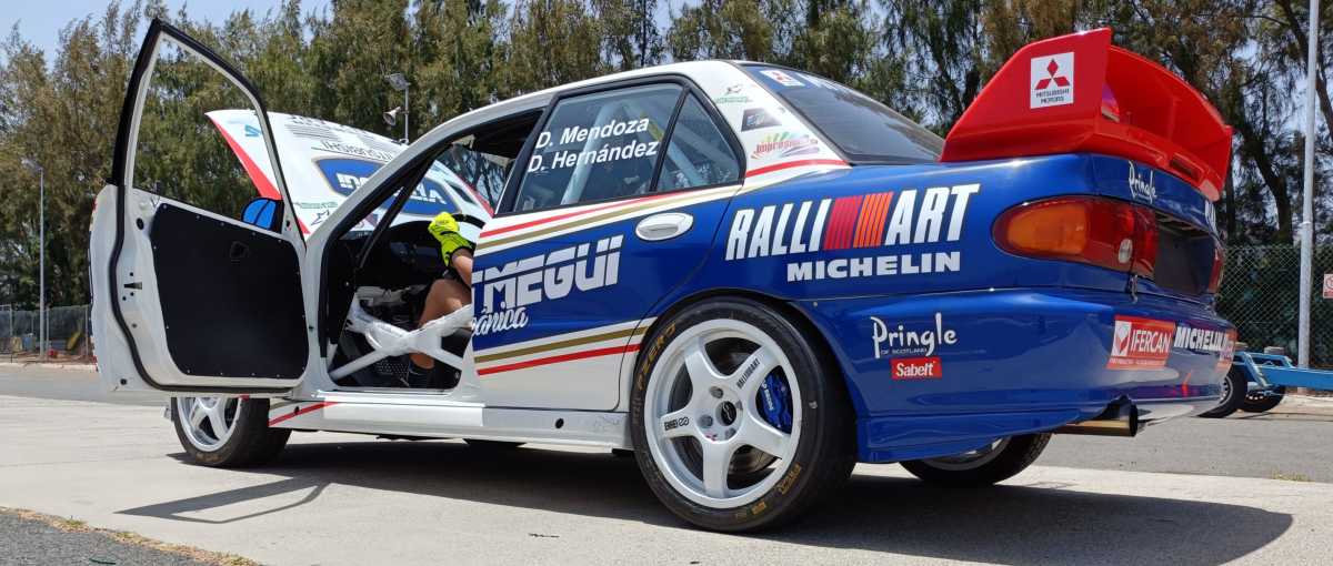 El joven piloto de Gáldar, noroeste de Gran Canaria, David Mendoza, hijo del veterano piloto Victor Mendoza, rodó en el Circuito de Maspalomas con su reconstruido Mitsubishi Lancer Evo III con el que debutó en el pasado Rally Comarca Norte de Gran Canaria. Gran salto después de hacerlo las últimas temporadas en un Toyota Starlet en las pruebas de montaña del Campeonato de Las Palmas como proceso de formación.