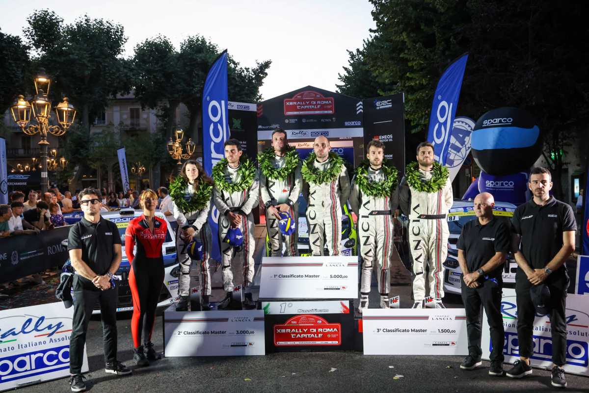 Los dos primeros días de carrera, que comenzaron a la sombra del Coliseo, vieron a Gianandrea Pisani y Nicola Biagi tomar el control a partir de la tercera etapa especial. Sin embargo, su camino hacia la victoria no fue nada fácil: el equipo Lion tuvo que adelantar primero a Gabriel Di Pietro y Andrea Dresti, y luego defenderse de Andrea Mazzocchi, que siguió siendo una amenaza constante hasta las últimas etapas, con mínimas diferencias entre los primeros clasificados. En la tercera ronda del Trofeo Lancia, Pisani se aseguró la victoria y dominó la categoría Master, terminando por delante de Mazzocchi y Giorgio Cogni, que supo mantener a raya al piloto austriaco Michael Lengauer, que realizó una impresionante actuación en las carreteras romanas.