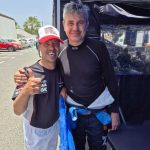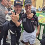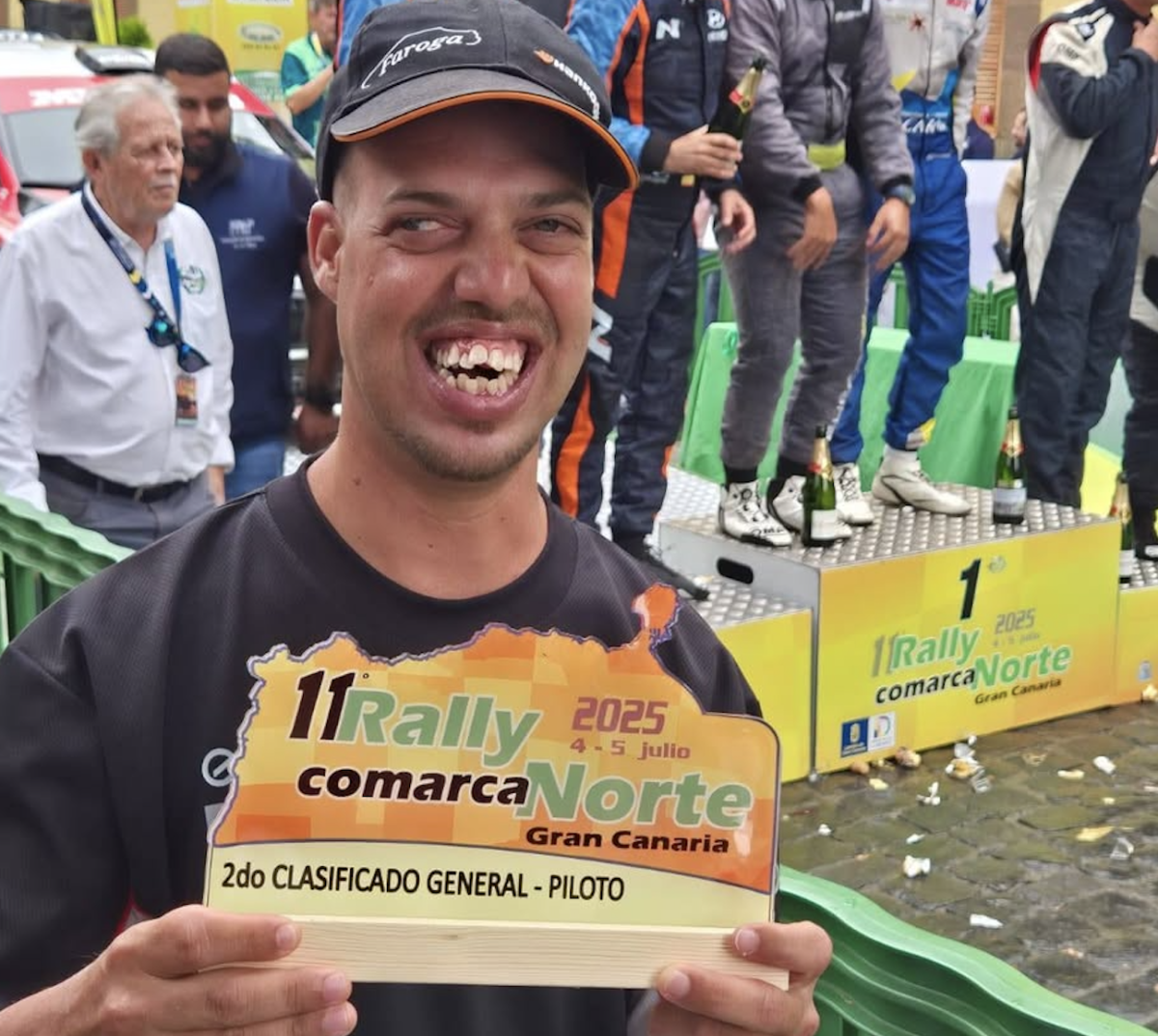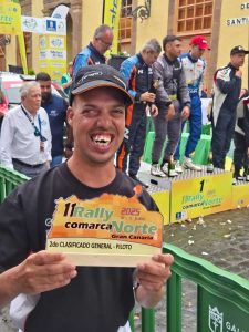 Como el bueno de Santi está fuera de ‘circulación’ por unos problemillas de salud, ahora ve los rallys dede la piedra. Como el Rally Comarca norte de Gran Canaria tuvo la ceremonia final en su municipio, el de Gáldar, aprovechó para fotografiarse con los tres ocupantes del podio, pero el verdadero protagonista fue Dani.