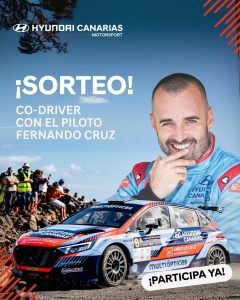 Hyundai Canarias realiza una promoción con un posterior sorteo donde se invita a ser copiloto del piloto tinerfeño Fernando Cruz en su Hyundai i20 N Rally2 en la previa del Rally Ciudad de La Laguna.