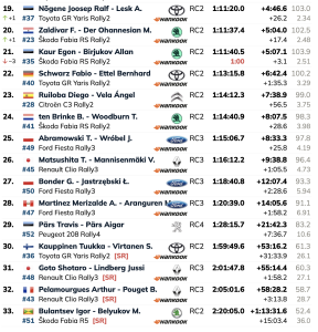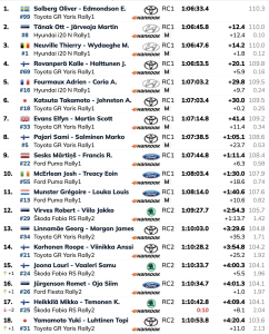 Mārtiņš Sesks y Josh McErlean completaron el top 10 con M-Sport Ford Pumas, separados por 18,6 segundos. Grégoire Munster fue 11.º tras una jornada difícil que incluyó problemas con los frenos, un desinflado de neumáticos y un sobrepaso.