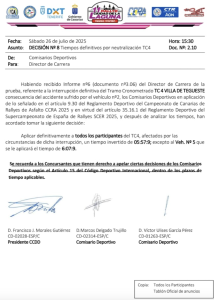 Publicamos la decisión que tomaron los Comisarios Deportivos del Rally Ciudad de La Laguna para neutralizar el cuarto tramo.