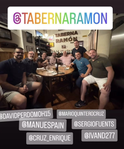 En la imagen colgada en redes sociales por la Taberna Ramón, se puede observar a los tres pilotos tinerfeños junto al veterano copiloto Mario Quintero y el piloto palmero David Perdomo, además de otros comensales.