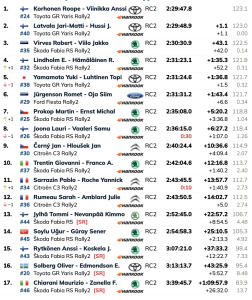 El japonés Yuki Yamamoto logró su mejor resultado personal al llevar su Toyota al quinto lugar, mientras que Romet Jürgenson quedó sexto con su Ford Fiesta Rally2.