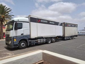 La semana grande del Rallye de Tierra Isla de los Volcanes-Trofeo Ciudad de Arrecife acaba de comenzar este lunes y las actividades se desarrollarán a partir del jueves, viernes y sábado. La Naviera Armas-Trasmediterránea trasladó a los vehículos de los diferentes equipos desde tierras peninsulares, que llegaron a Lanzarote en la tarde de ayer domingo y que este lunes ya empiezan a preparar la competición del fin de semana.