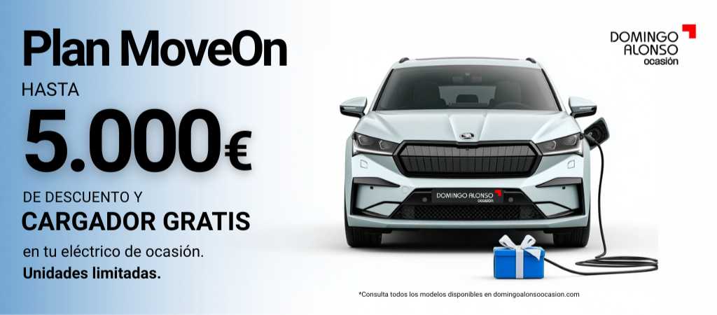 El Plan MoveOn de Domingo Alonso Ocasión incluye una amplia y variada selección de modelos eléctricos de ocasión de alta calidad, que van desde compactos urbanos hasta vehículos familiares y comerciales de marcas como Volkswagen (ID.3, ID.4 e ID.5), Volkswagen Comerciales (ID. Buzz), Audi (Q4, e-tron y e-tron GT), Škoda (Enyaq), Hyundai (IONIQ 5 e IONIQ 6), Citroën (ë-C4 y ë-Berlingo) y DS Automobiles (DS3), entre otras.