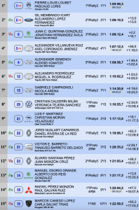 Novenos acabaron Luis F. Martínez y Christian Morán (Opel Corsa Rally 4), cerrando el top 10 Jordi Nualart y Daniel Rivera (Renault Clio Rally5=, primeros de la Clio Trophy España de Rallys de Tierra,