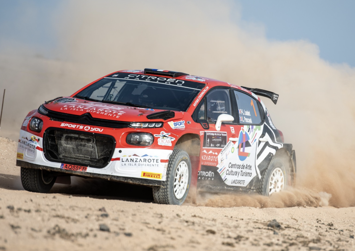 Los líderes del CERT 2025, Gil Membrado y Alejandro López (Ford Fiesta Rally2), se ponían primeros en las dos especiales del día, pero Loubet y Pascaud imprimieron un fuerte ritmo para terminar ganando la cita lanzaroteña en su primera participación,