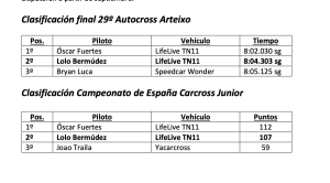 “Ha sido doloroso ver cómo se me escapaba una victoria en casa. Tenía muchas ganas de ganar en Arteixo, porque tiene un valor especial para todos los amantes del autocross. Pero debemos mirar hacia delante: queda aún mucho campeonato y vamos a luchar hasta el último metro por el título. El descanso veraniego nos servirá para ultimar detalles y seguir trabajando en busca del título de Campeón de España de Carcross Junior”, declaró Bermúdez.