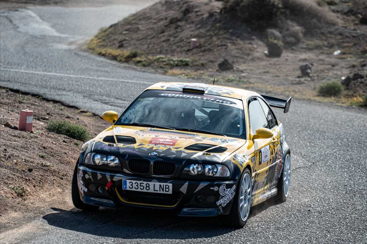El copiloto Adriá Muñoz se bajó del Toyota Aygo N3 de Raúl Carrasco con el que corrió en los tramo de tierra del Rally Isla de Los Volcanes, para subirse al BMW M3 E46 de Jorge Guillén para competir en los tramos de asfalto del RallySprint de Antigua.
