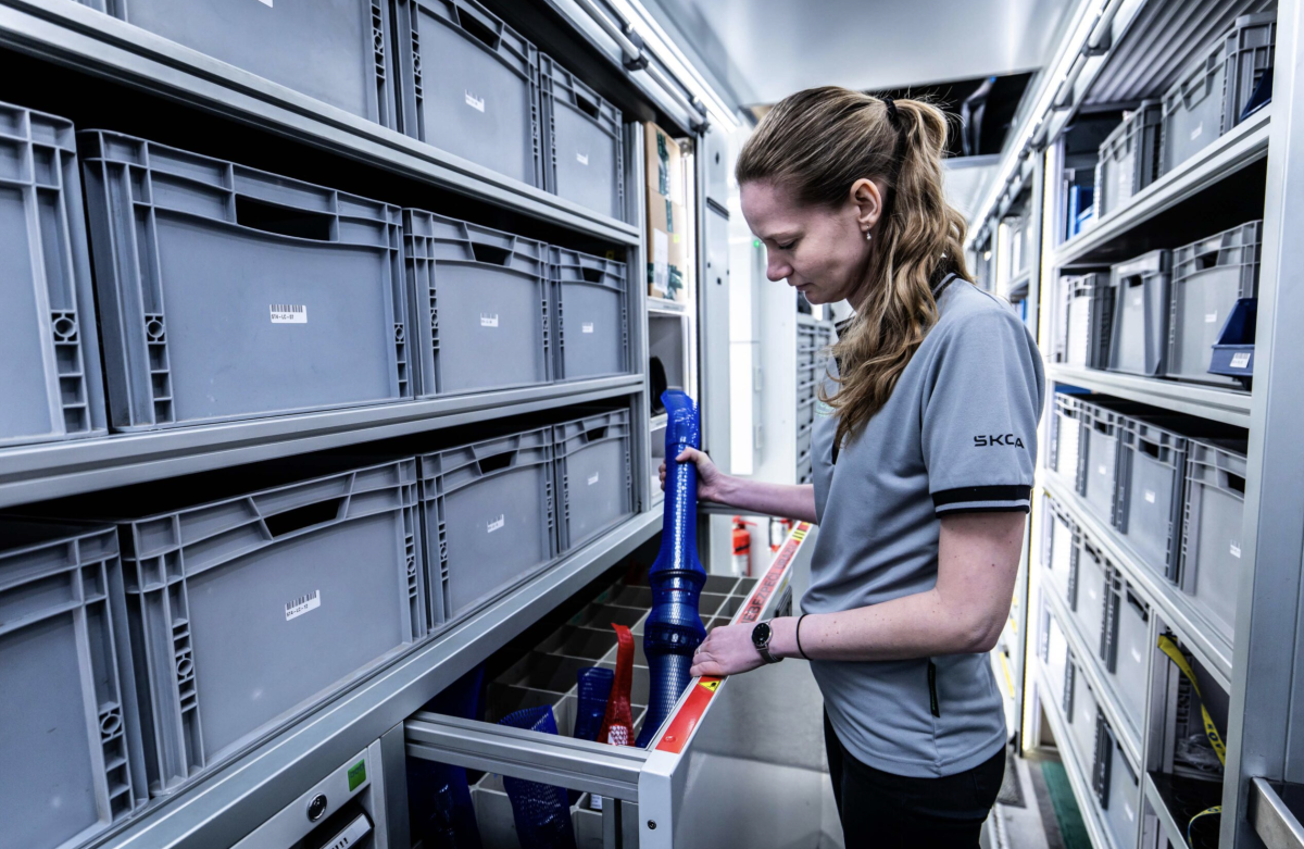 Kateřina Hálová: El camión está aparcado en la estación de servicio, donde los equipos de competición tienen sus instalaciones. Los clientes pueden hacer un pedido online, por correo electrónico o WhatsApp, o pueden acudir a comprobar la disponibilidad de la pieza en persona. Preparamos el pedido y un representante del equipo recogerá las piezas adquiridas. Gestionamos los pedidos con rapidez y tratamos de responder con flexibilidad, lo cual es especialmente necesario cuando a los clientes les falta una pieza importante justo antes o incluso durante el servicio. En el pasado, ha ocurrido que, sin una pieza necesaria, el equipo no podía continuar, y en tal situación, la capacidad de procesar el pedido rápidamente puede ser crucial.