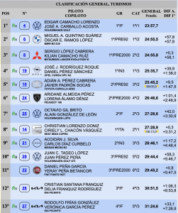 La cuarta plaza era para José Rodríguez y Daniel Pérez (Opel Corsa OPC N3), superando en 9.5 a Adián Andrés Pérez y Javier Padrón, que defendían su liderato provincial a los mandos de su Toyota Corolla AE92.