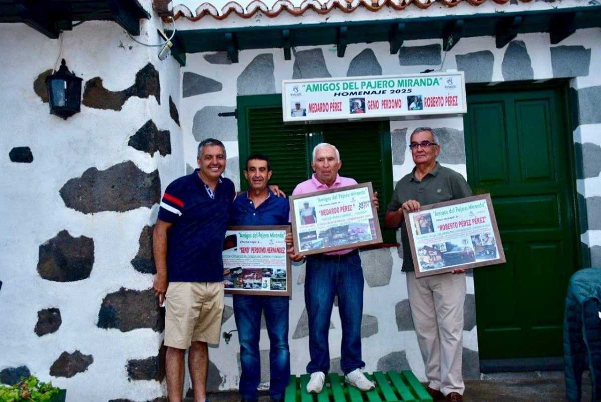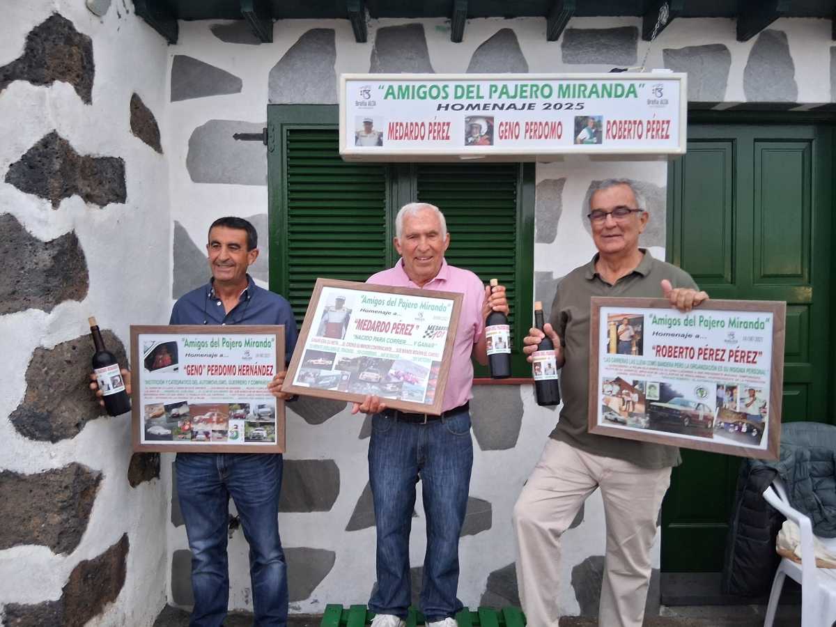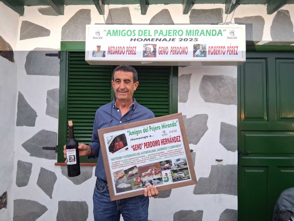 Borja Perdomo, hijo del histórico piloto palmero Eugenio Perdomo, uno de los tres deportistas homenajeados por parte de los Amigos del Pajero Miranda en Breña Alta, se mostró orgulloso de su padre.