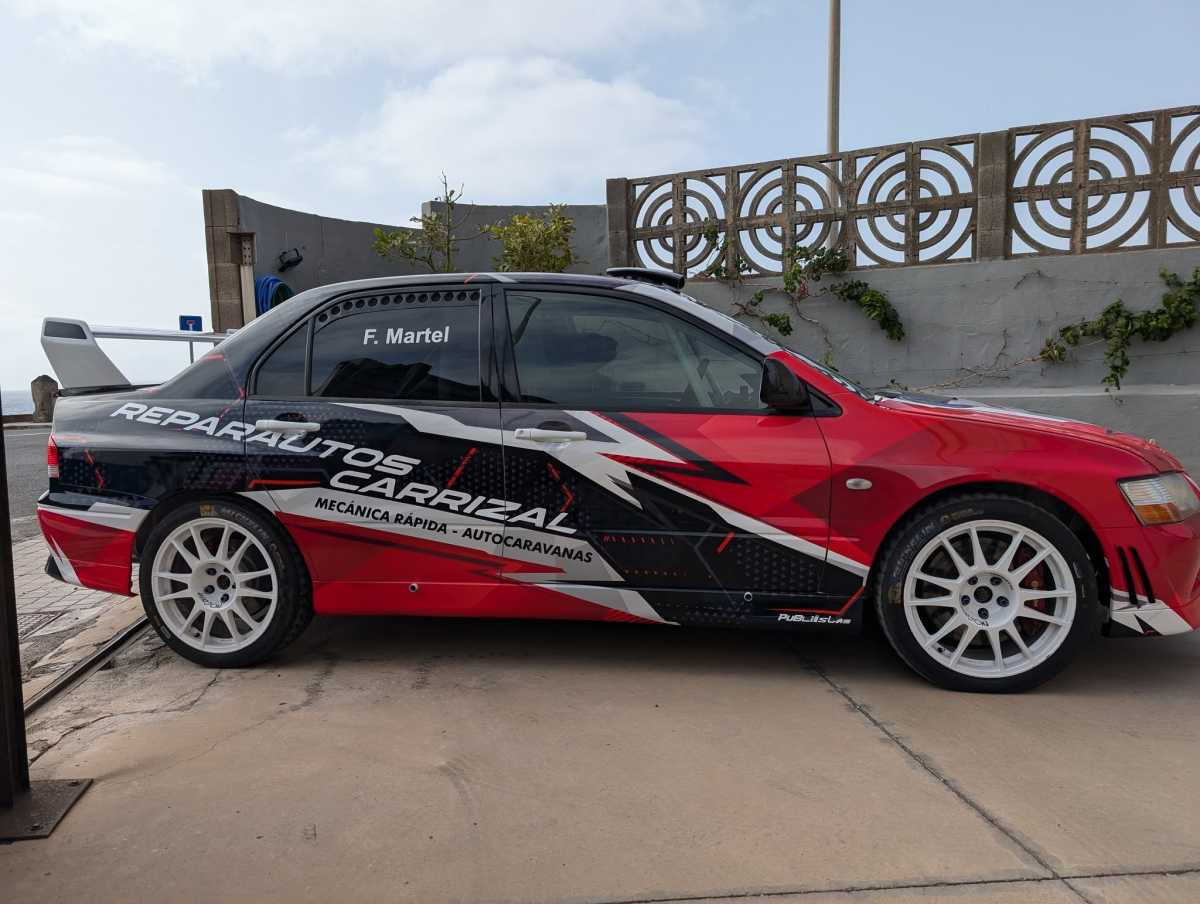 El conocido y demandado rotulista grancanario Acorán Navarro ha mostrado su último trabajo, la rotulación del Mitsubishi Lancer Evo del equipo grancanario Reparautos Carrizal