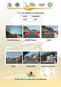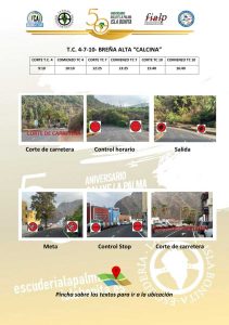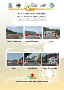 La última etapa tendrá los tramos de ‘Breña Alta Calcina’ (6,16 km a las 10:10 h, 13:25 h y 16:40 h), ‘Breña Baja Mágica a Villa de Mazo’ (13,73 km a las 10:35 h, 13:50 h y 17:05 h), ‘Fuencaliente de La Palma’ (8,87 km a las 11:20 h y 14:35 h) y una última súper especial que responde al nombre de ‘Santa Cruz de La Palma es capital’ (2,21 km a las 18:10 h) que pondrá el punto y final a esta edición número 50.