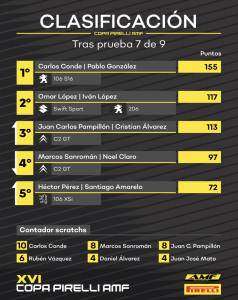 Juan José Mato recogió el testigo del liderato y junto a Andrea Balayo se anotó su primera victoria en esta copa de promoción, seguido por Héctor Pérez. Tras estos resultados, con Pampillón sumando los puntos de la tercera plaza, Carlos Conde tiene la balanza del título más decantada a su favor, y con firmar un segundo puesto en alguna de las dos citas que quedan, será matemáticamente campeón.
