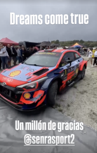Su presencia en tierras gallegas ha sido altamente productiva, no sólo por el espectáculo mostrado a los mandos de un Skoda Fabia R2, sino la oportunidad que ha tenido de poder rodar con el Hyundai i20 Coupe WRC que le cedió para la ocasión el gran dominador del Campeonato Gallego de Rallys de las última década, Víctor Senra,