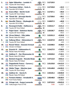 El ataque de Ogier cobró impulso a lo largo del sábado, ya que su estrategia táctica de llevar solo cinco neumáticos frente a los seis de sus rivales empezó a dar sus frutos. La ventaja de peso le ayudó a ganar cuatro de las siete etapas del día, adelantando a Fourmaux antes de retomar el liderato cuando Rovanperä tuvo problemas.