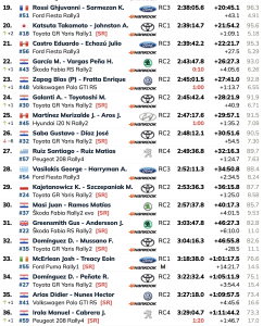 Con los pilotos de M-Sport Ford, Josh McErlean y Grégoire Munster, retirando sus Puma Rally1 con daños por impacto, los equipos de WRC2 ocuparon el resto del top 10. Robert Virves aprovechó los problemas de Nikolay Gryazin para liderar la categoría en octavo lugar en la general por delante de Yohan Rossel y Oliver Solberg.